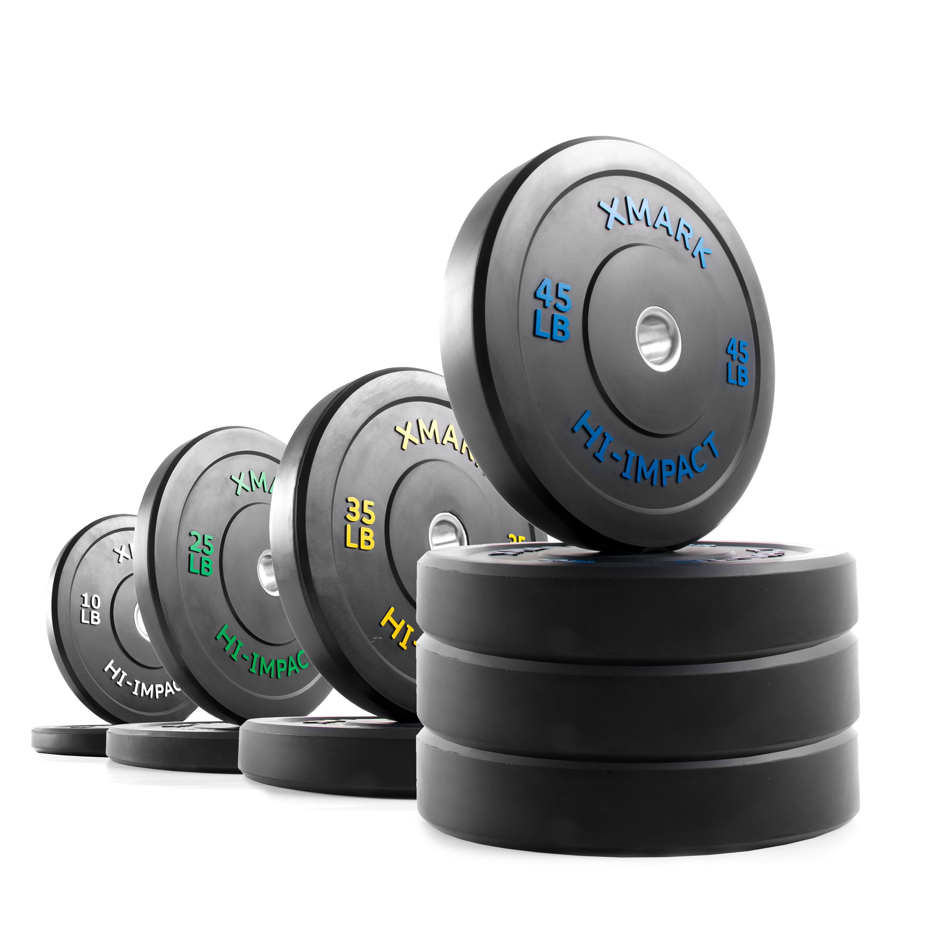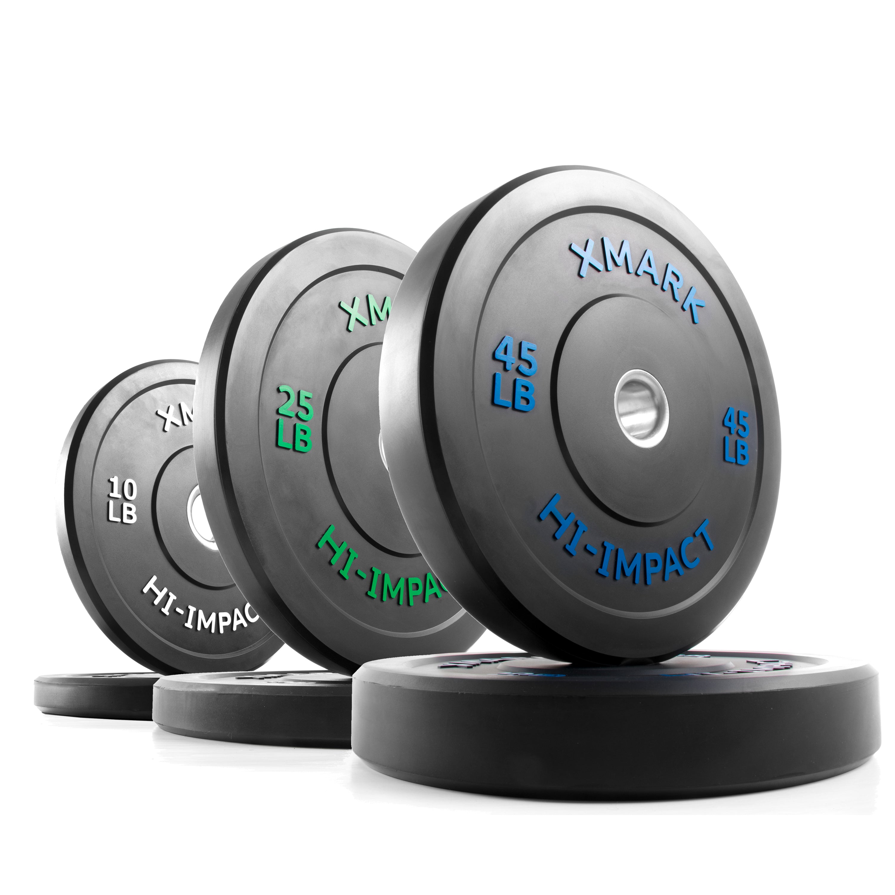 XMARK Hi-Impact bumper plates are specially engineered for dropping. The Hi-Impact high density rubber results in a tough and durable weight plate with a slim profile and dead bounce. Solving an industry wide problem, XMARK followed IWF standards and reduced the diameter or height of the 10 lb plate leading to improved stability of the plate.